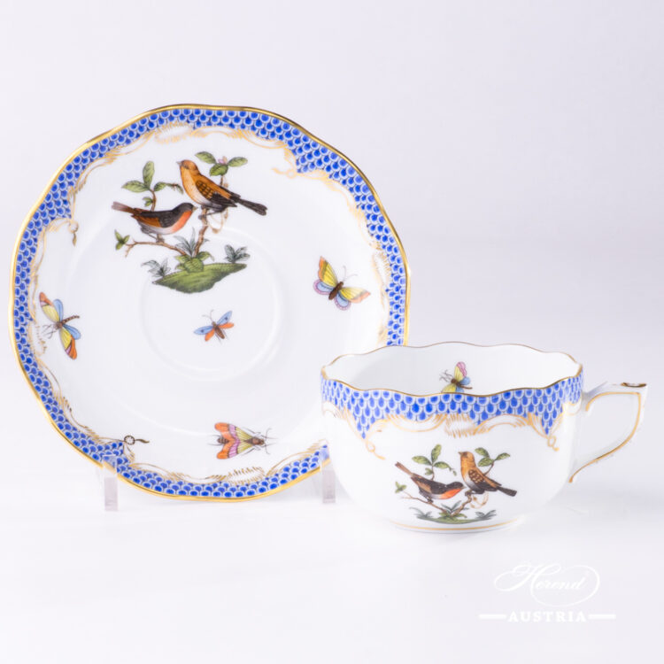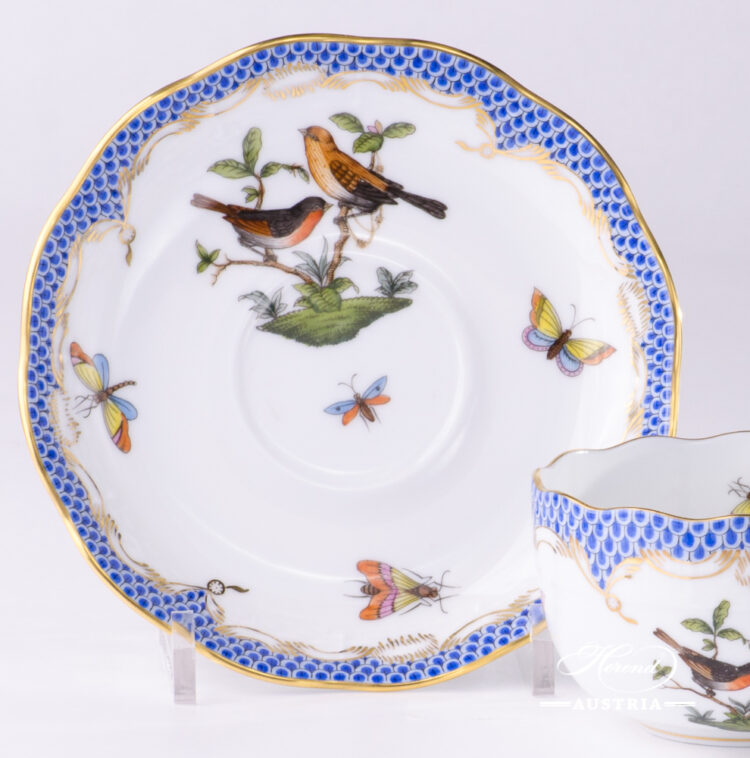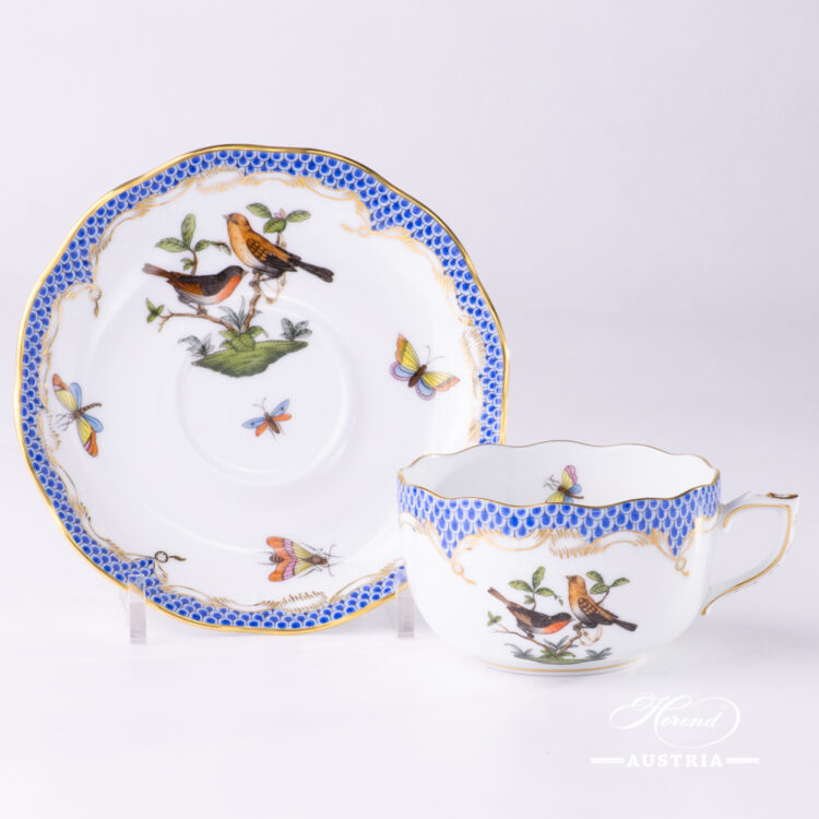 Tea Cup with Saucer – 724-0-00 RO-ETB – Rothschild Bird Blue Fish Scale decor.