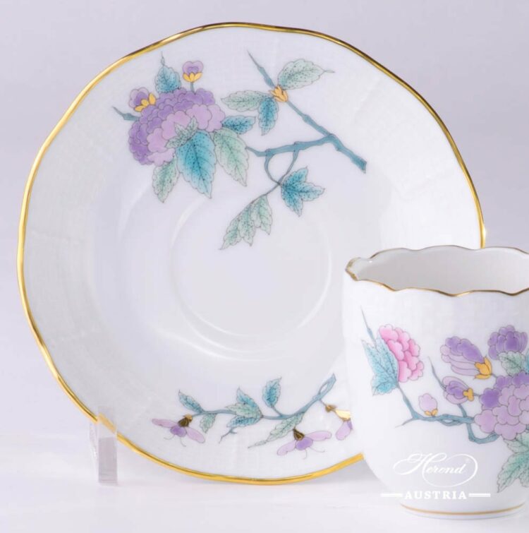 Royal Garden Turquoise Flower – EVICTF2 pattern – Herend Coffee / Espresso Cup and Saucer.