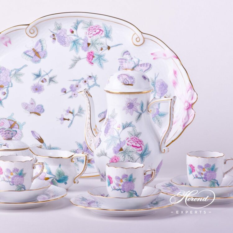 Royal Garden Turquoise – EVICT2 and EVICTF2 patterns – Herend Coffee / Espresso Set for 6 Persons.