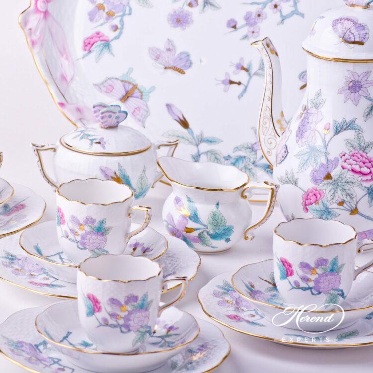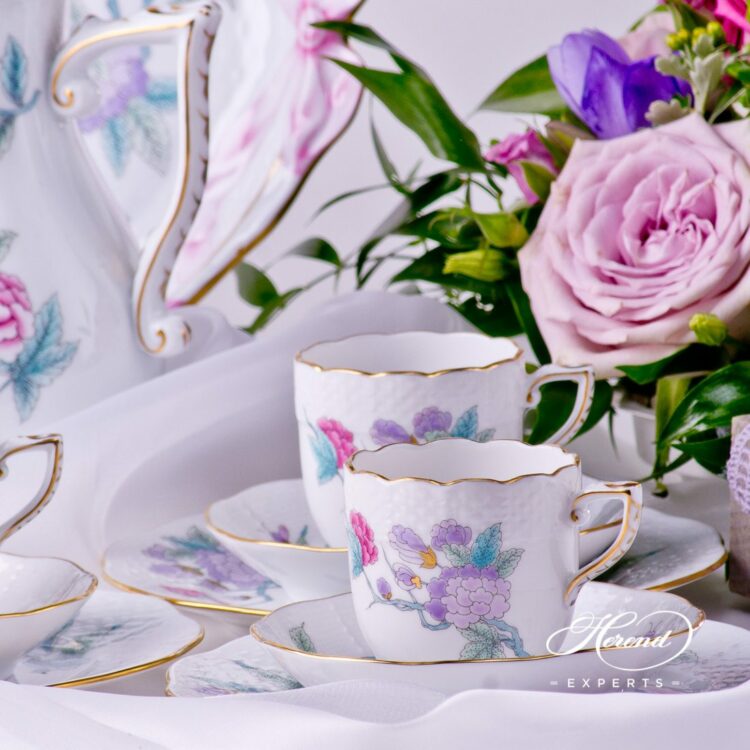 Royal Garden Turquoise – EVICT2 and EVICTF2 patterns – Herend Coffee / Espresso Set for 6 Persons.