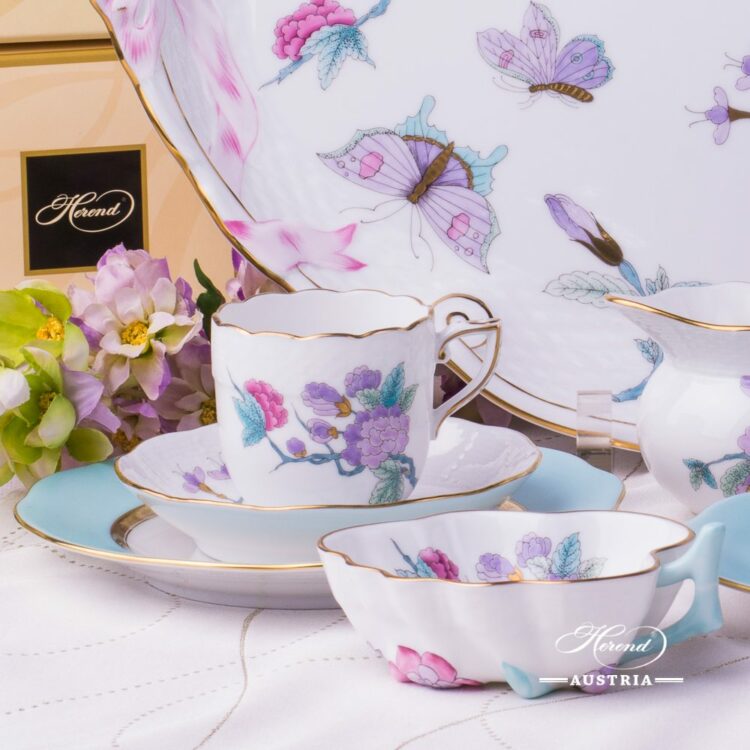 Royal Garden Turquoise – EVICT2 and EVICTF2 patterns – Herend Coffee / Espresso Set for 2 Persons.