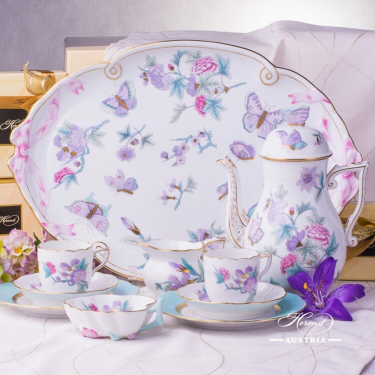 Royal Garden Turquoise – EVICT2 and EVICTF2 patterns – Herend Coffee / Espresso Set for 2 Persons.