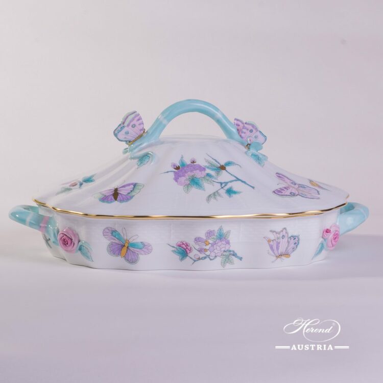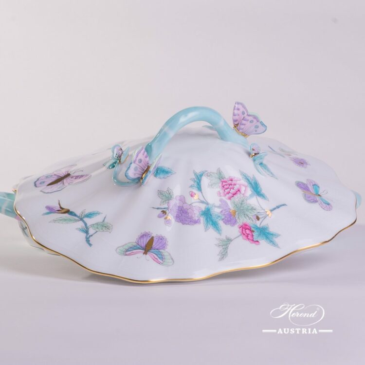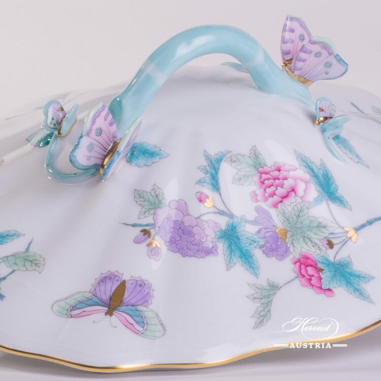 Royal Garden Turquoise Flower and Butterfly – EVICT2 pattern – Herend Vegetable / Ragout Dish.