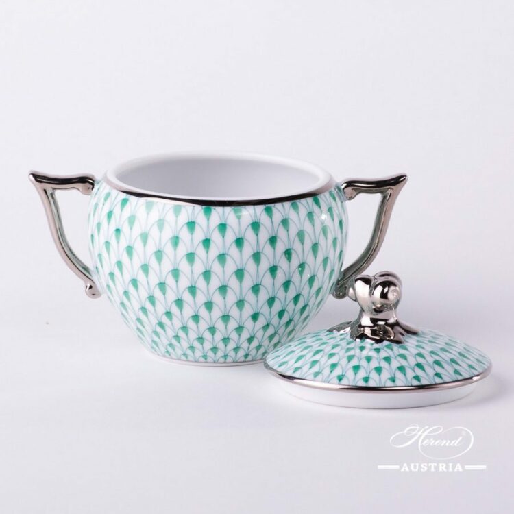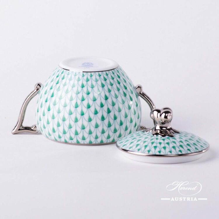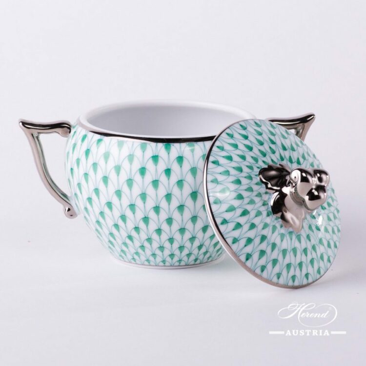 Sugar Basin w. Twisted Knob – Herend Green Fish Scale w. Platinum pattern.