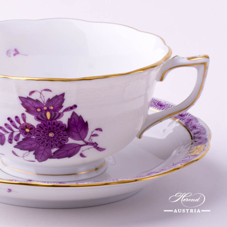 Herend porcelain Tea Cup and Saucer – Herend Chinese Bouquet Lilac / Apponyi Lilac AL decor.