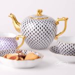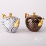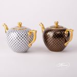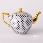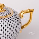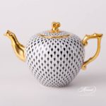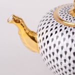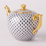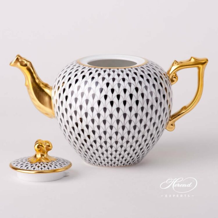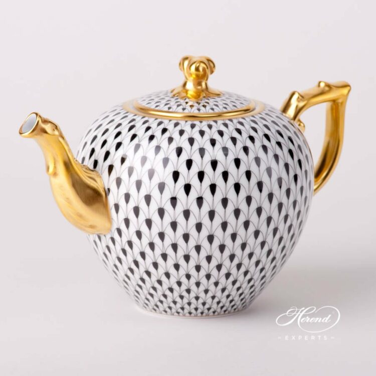 Herend fine china Tea Pot w. Twisted Knob – Herend Black Fish Scale – VHN pattern.