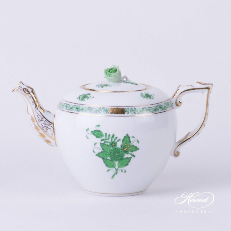Herend fine china Tea Pot w. Rose Knob – Herend Chinese Bouquet Green / Apponyi Green design.