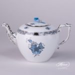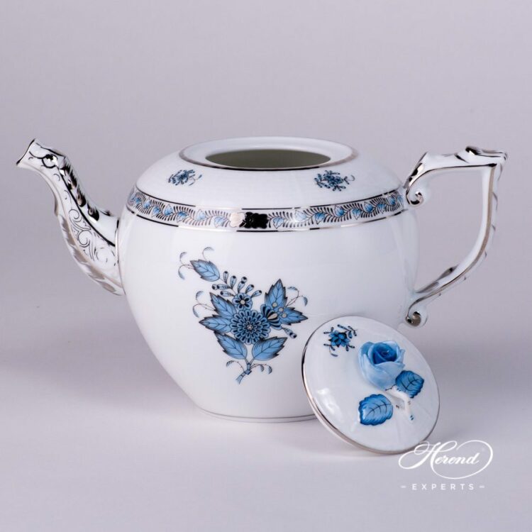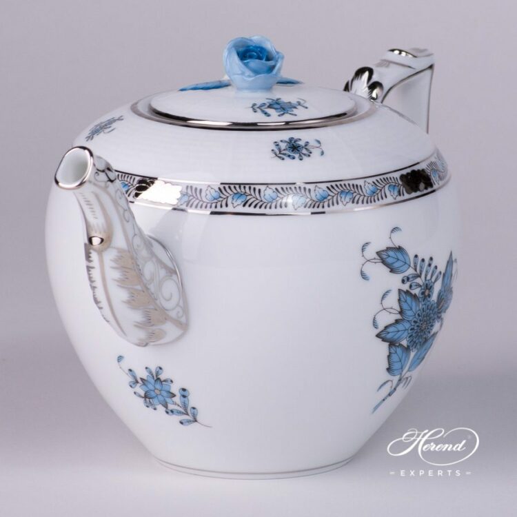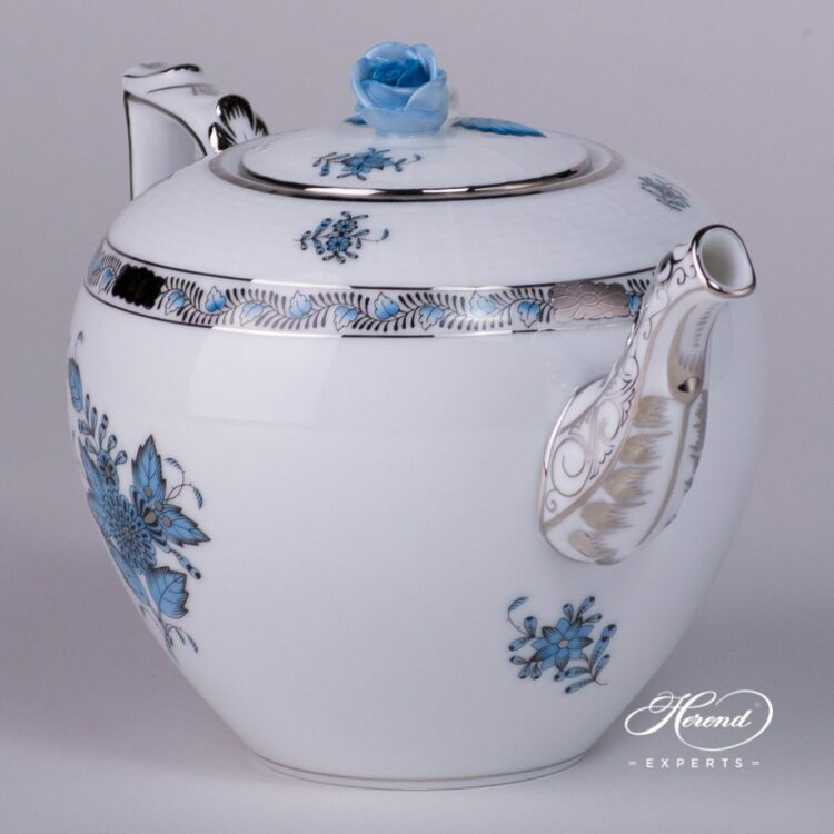 Herend porcelain Tea Pot with Rose Knob – Herend Chinese Bouquet Turquoise / Apponyi Turquoise with Platinum – ATQ3-PT decor.