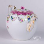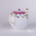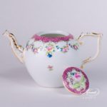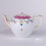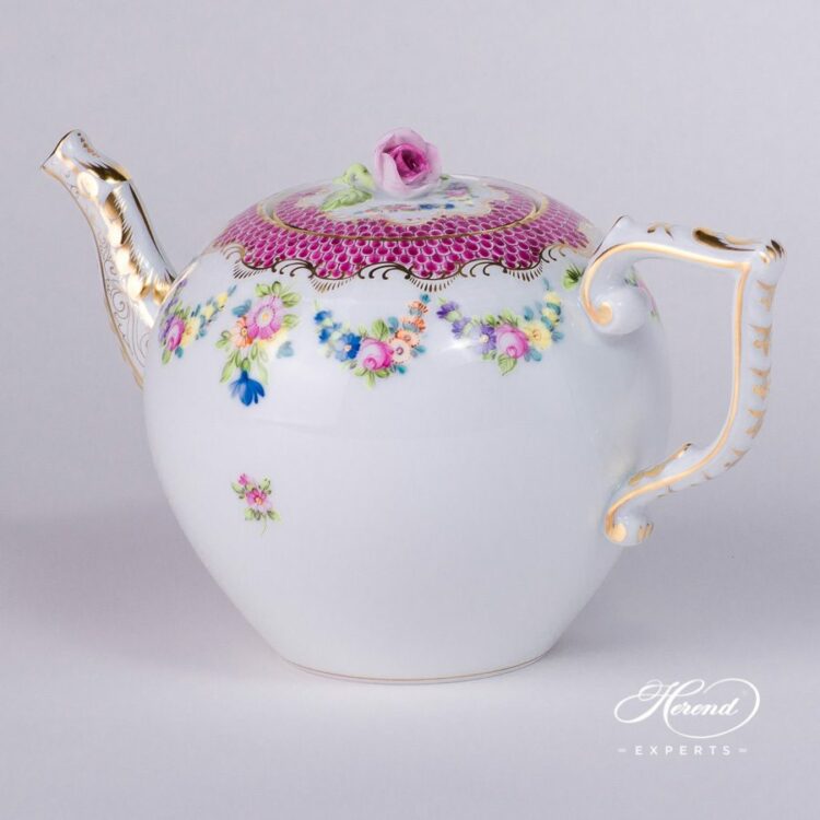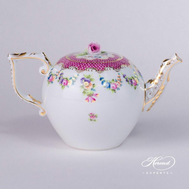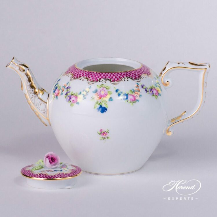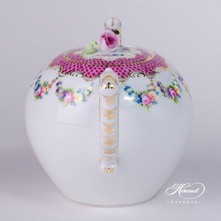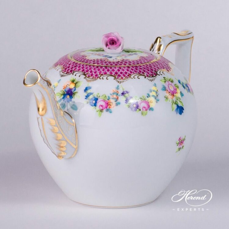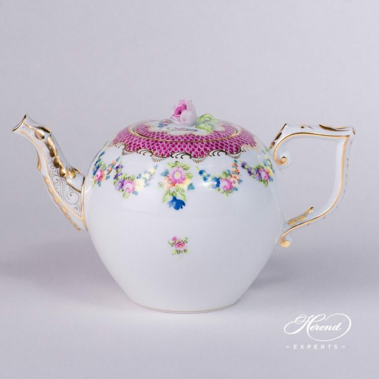 Herend porcelain Tea Pot with Rose Knob – Herend Flower Garland Purple Fish Scale pattern.