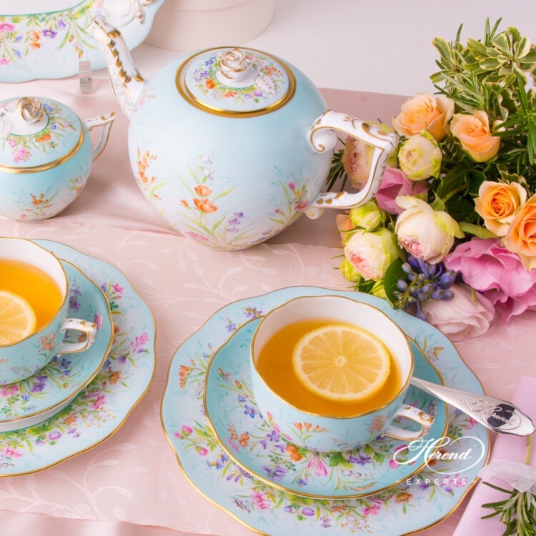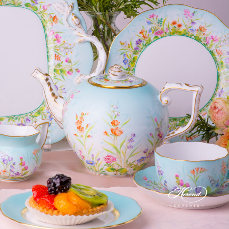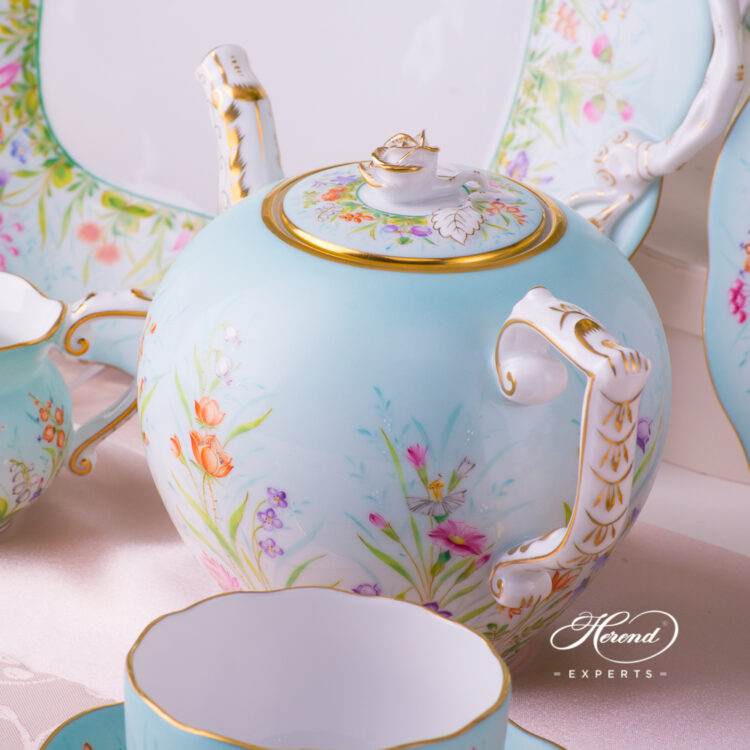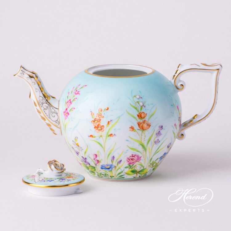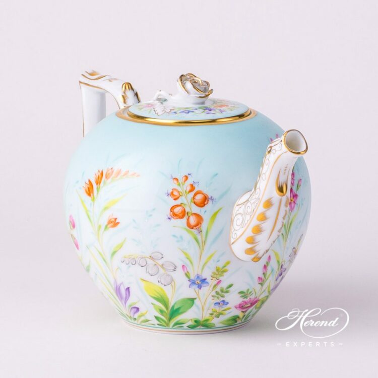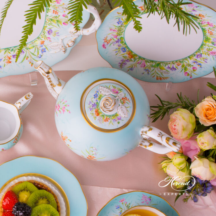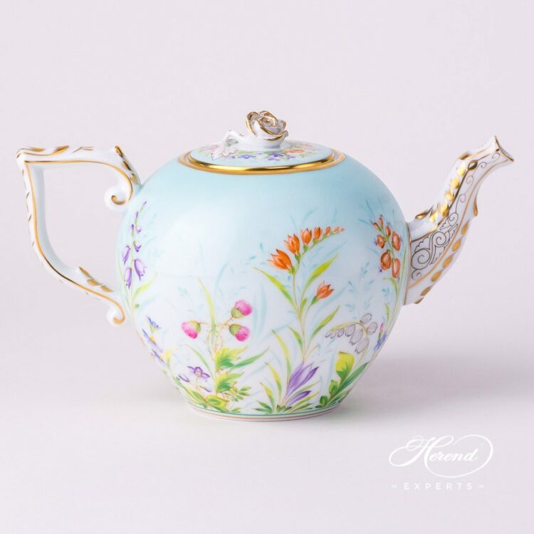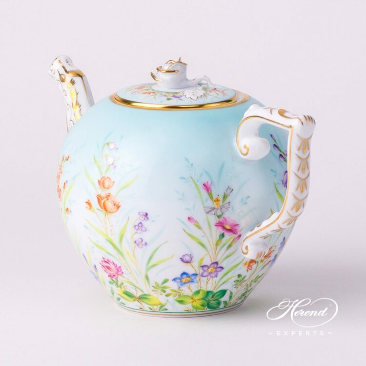 Herend porcelain Tea Pot with Rose Knob – Herend Four Seasons QS pattern.