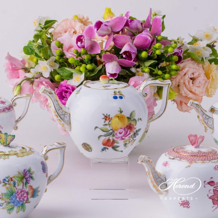 Herend porcelain Tea Pot with Strawberry Knob – Herend Fruit Bouquet decor.