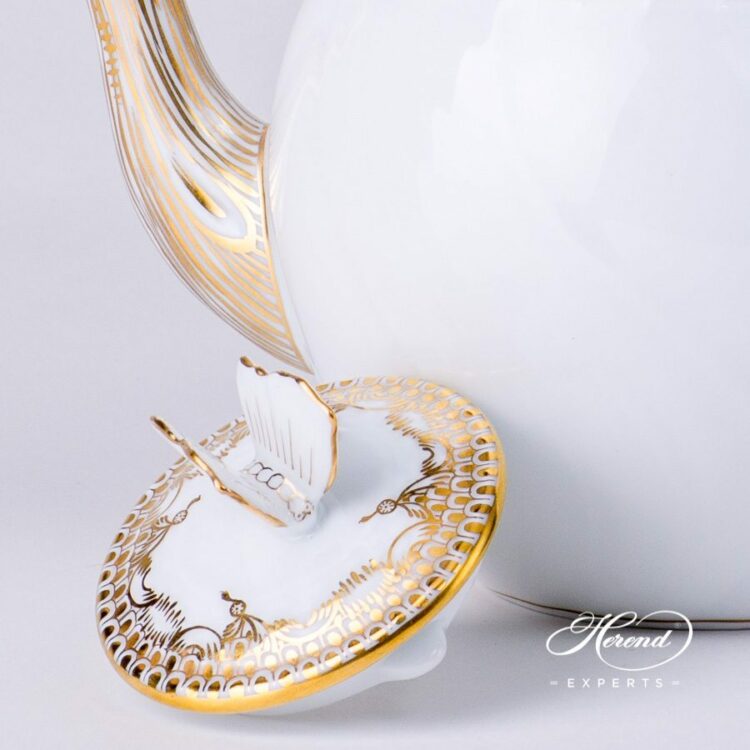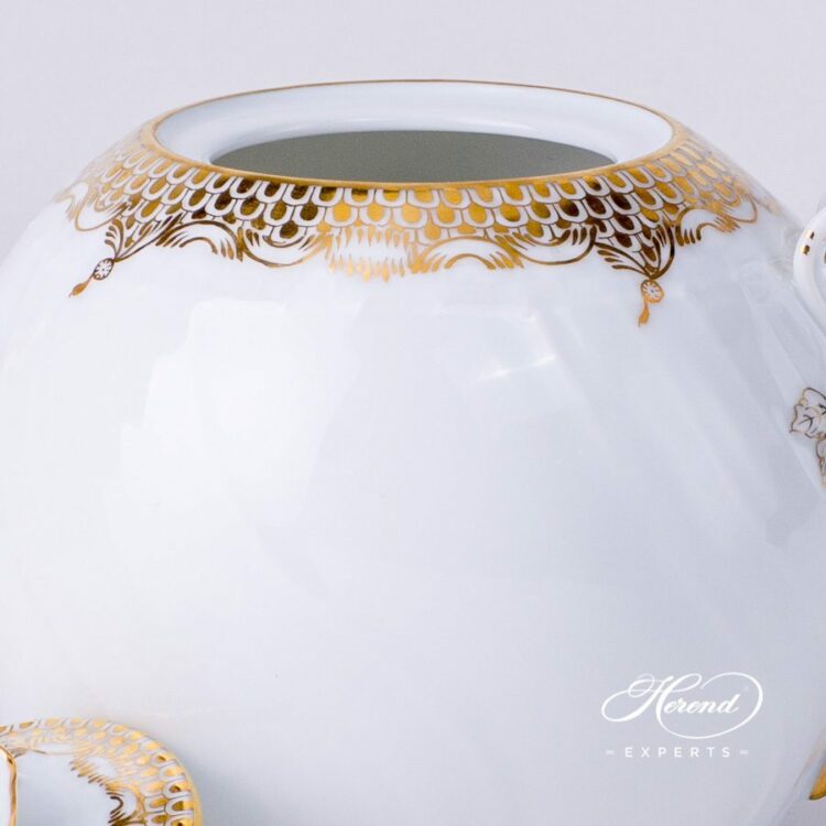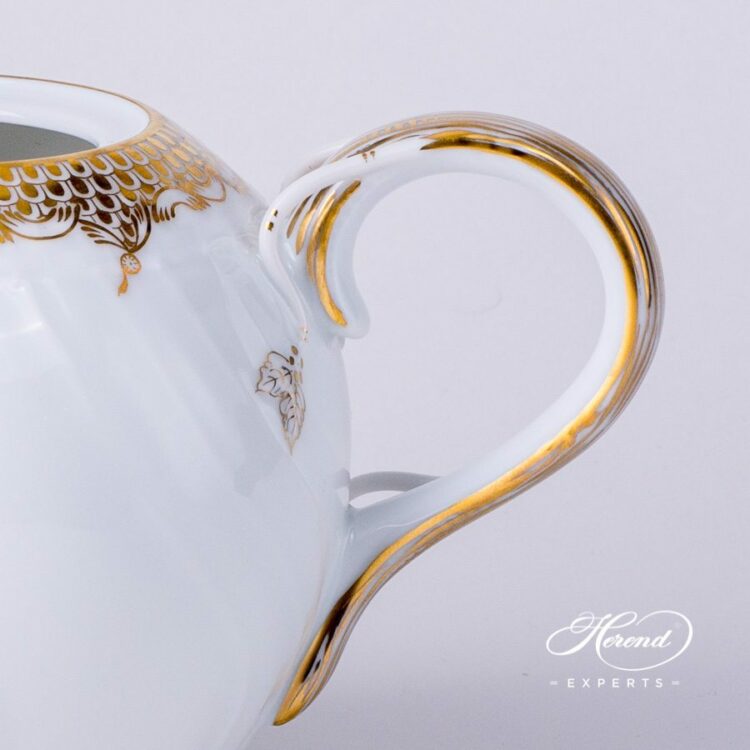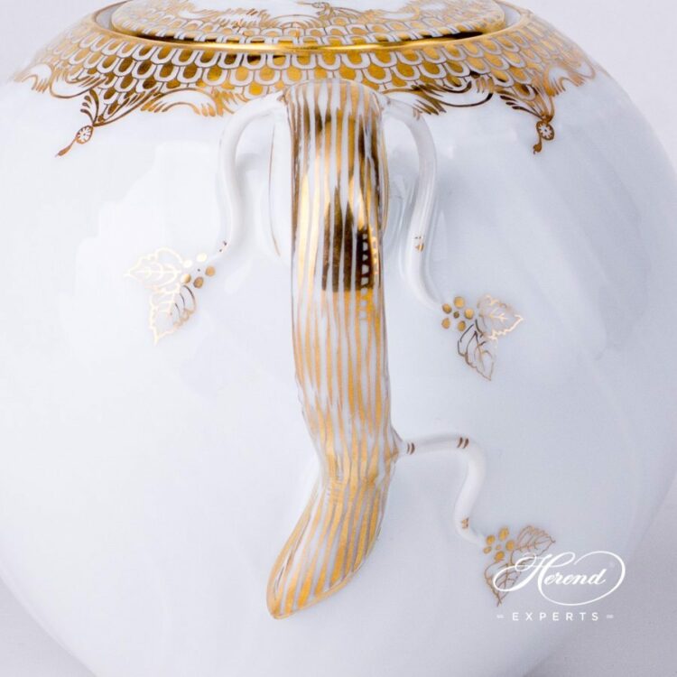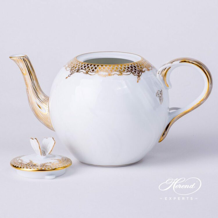 Herend porcelain Tea Pot with Butterfly Knob – Herend Gold Fish Scale pattern.