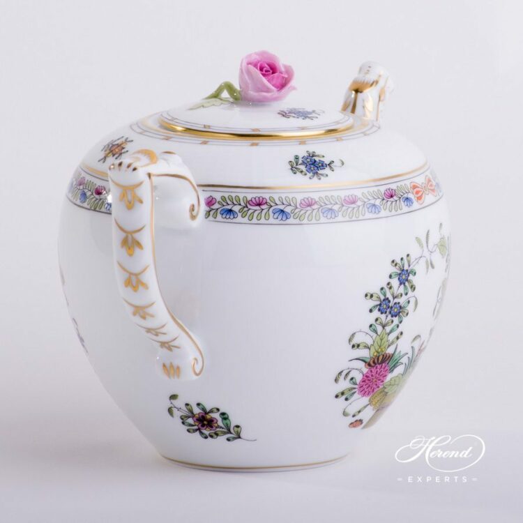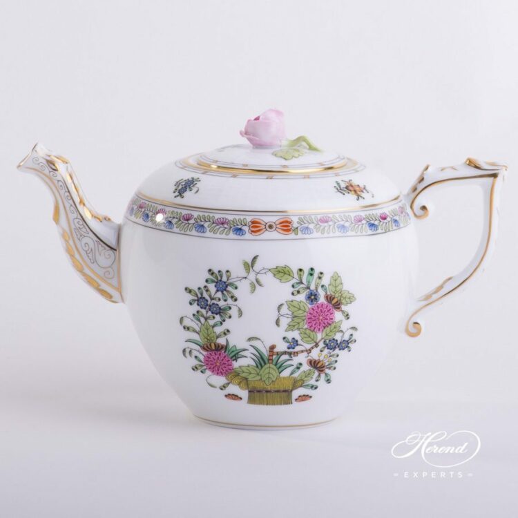 Herend porcelain Tea Pot with Rose Knob – Herend Indian Basket Multicolour pattern.