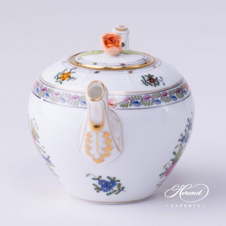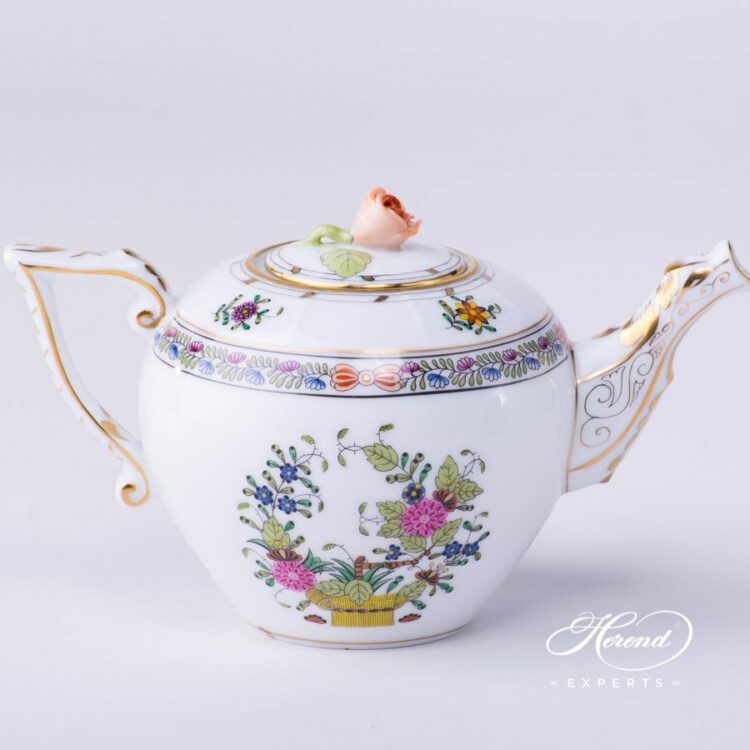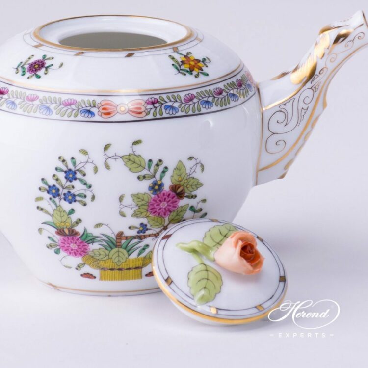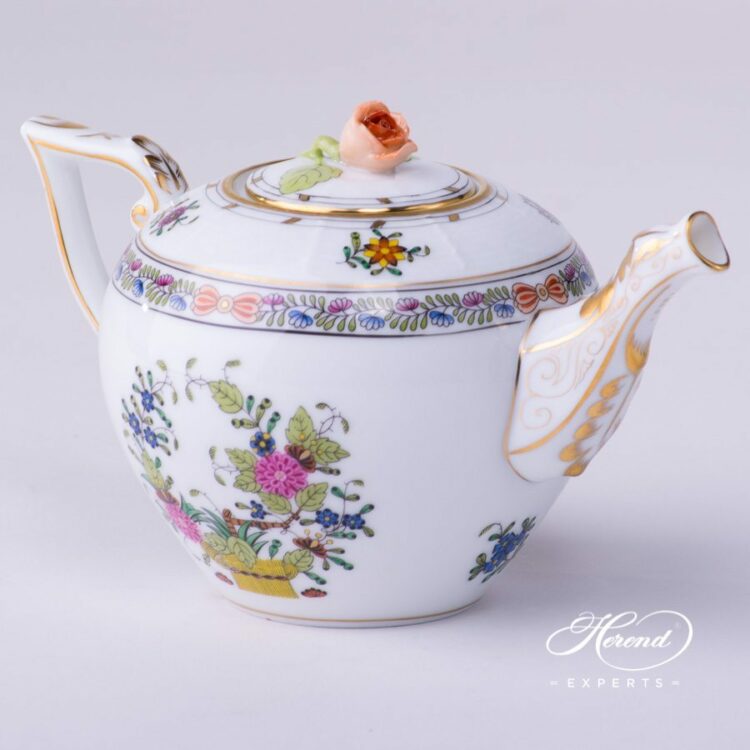 Herend porcelain Miniature Tea Pot with Orange Rose Knob – Herend, Indian Basket – FD pattern.