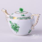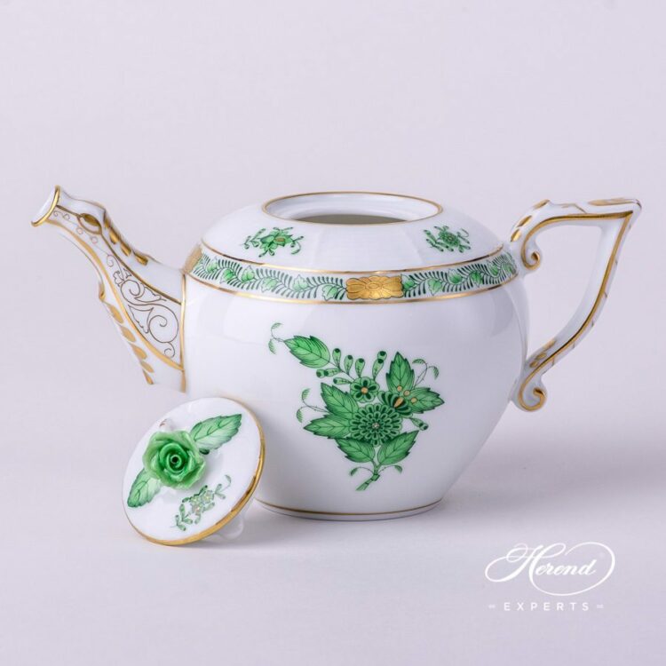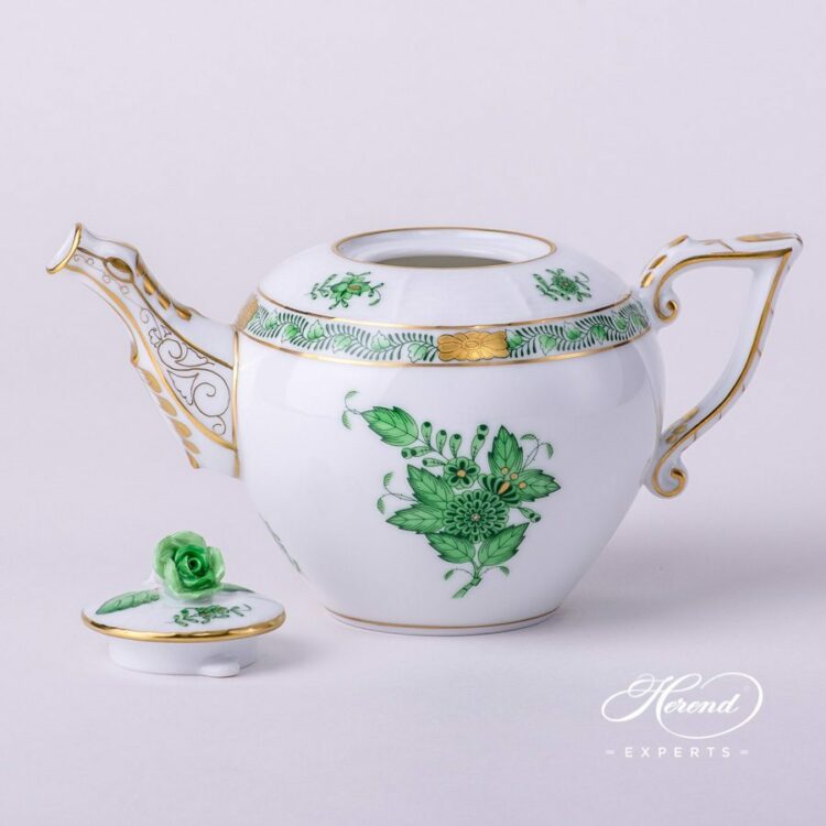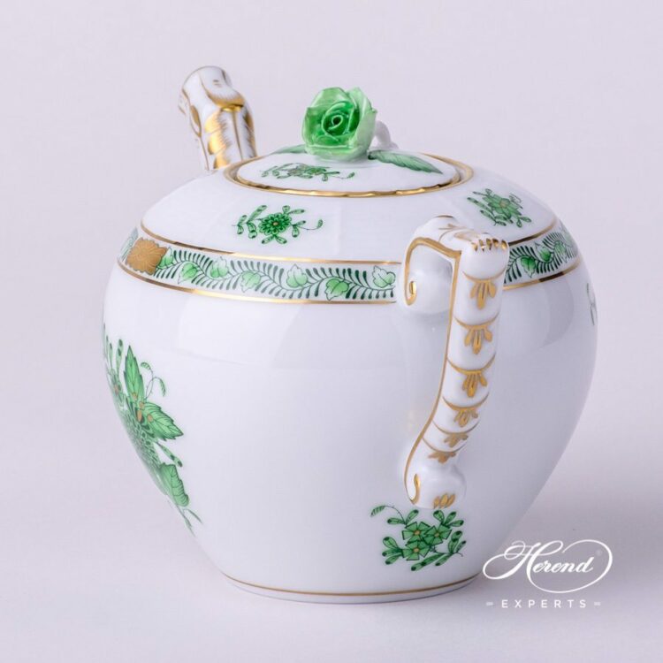 Herend porcelain Miniature Tea Pot with Rose Knob – Herend Chinese Bouquet Green /Apponyi Green design.
