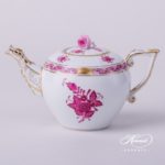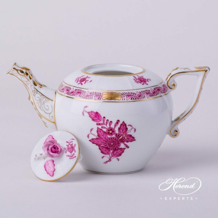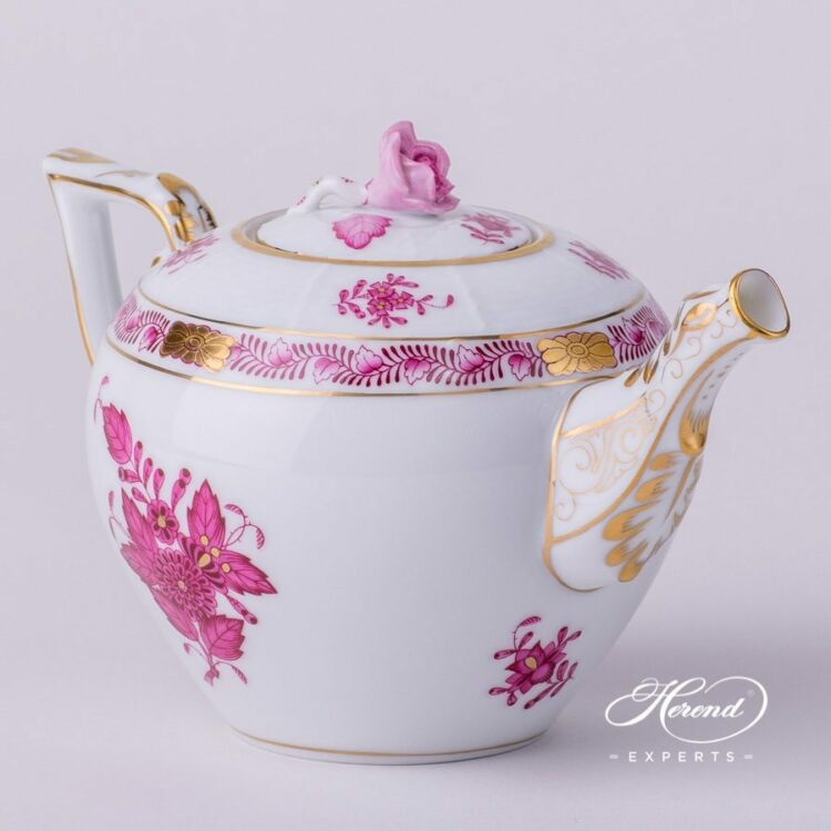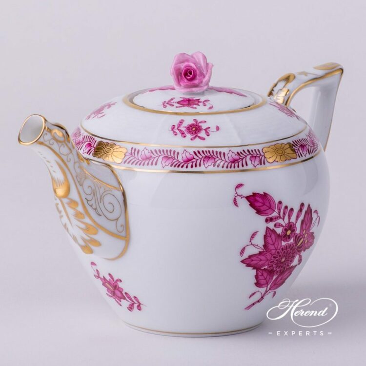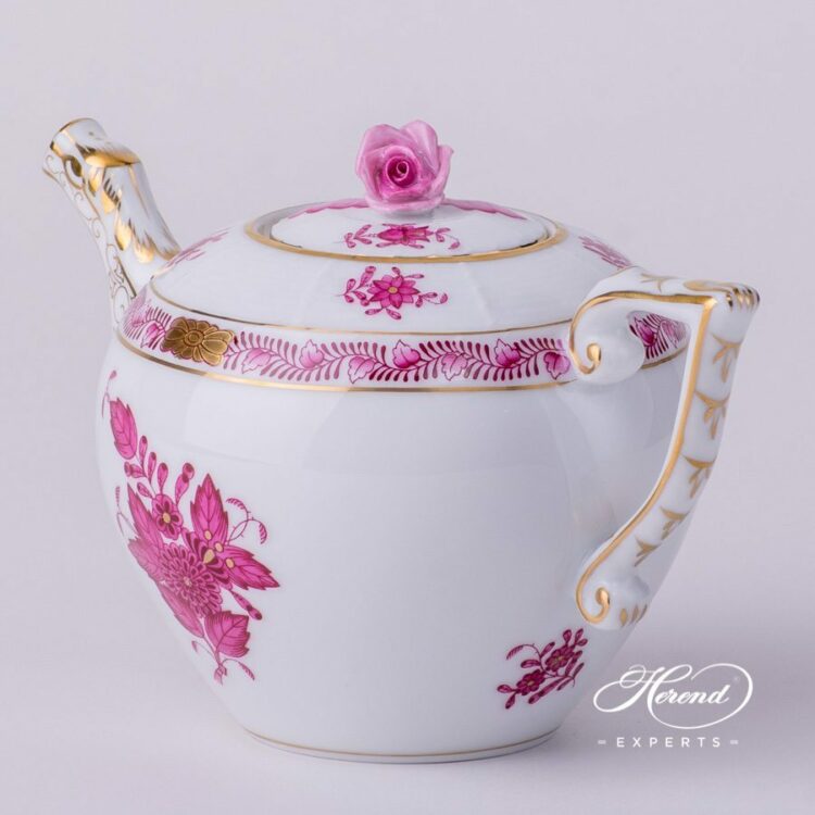 Herend porcelain Miniature Tea Pot with Rose Knob – Herend Chinese Bouquet Raspberry / Apponyi Purple – AP design.