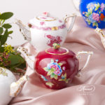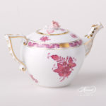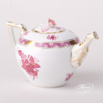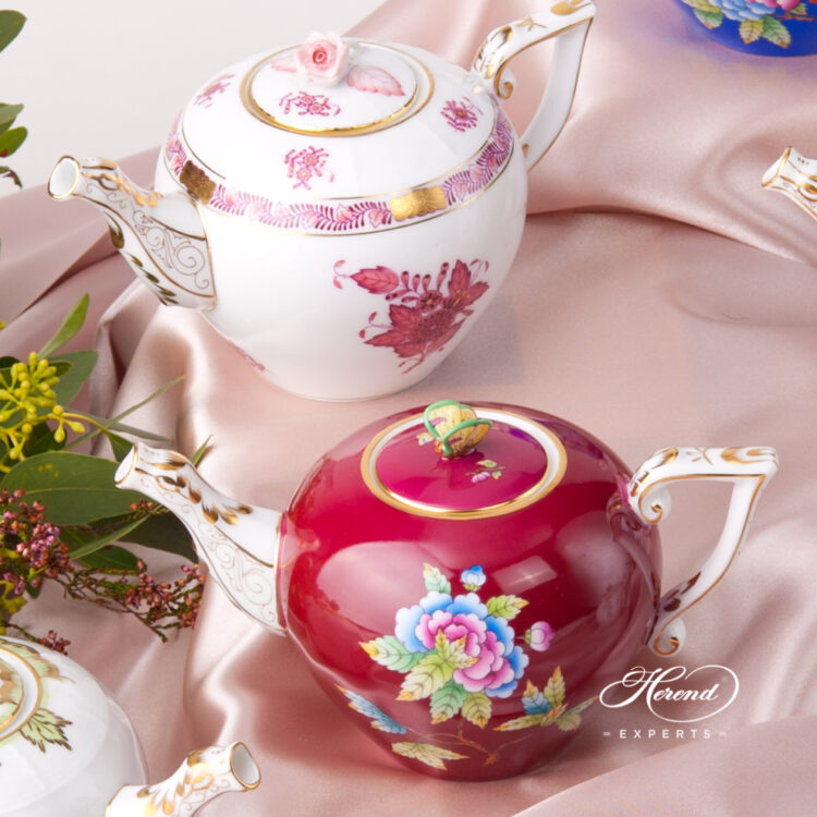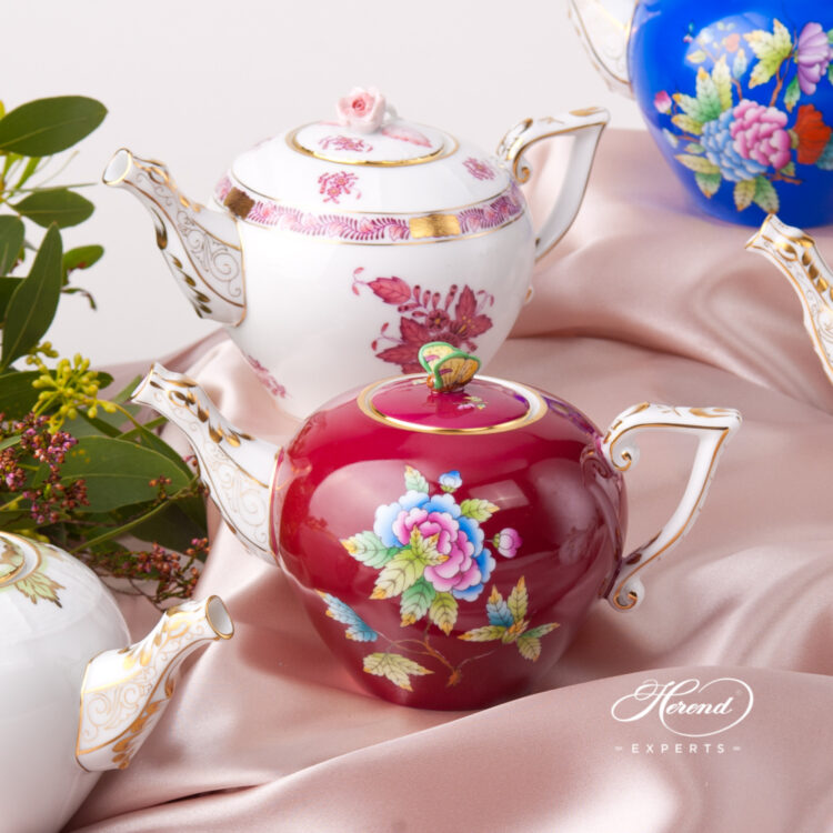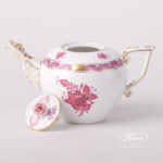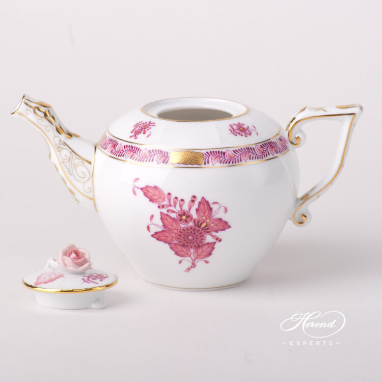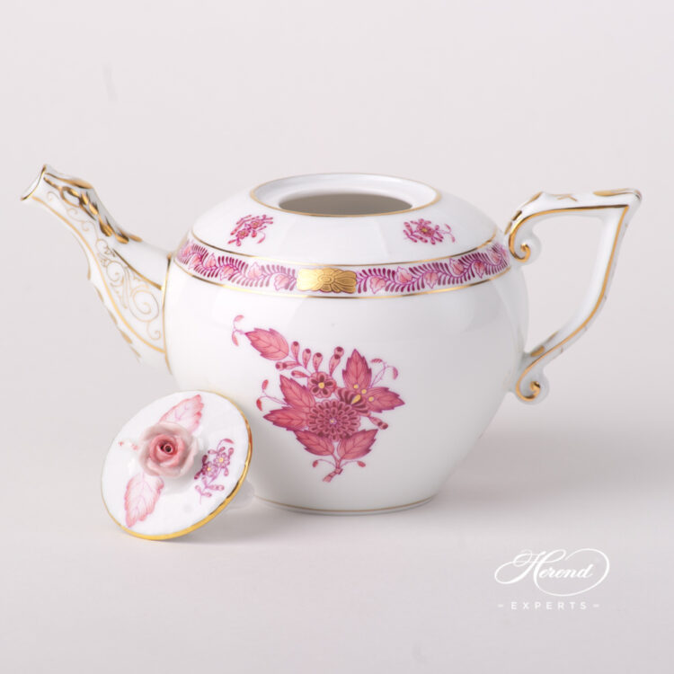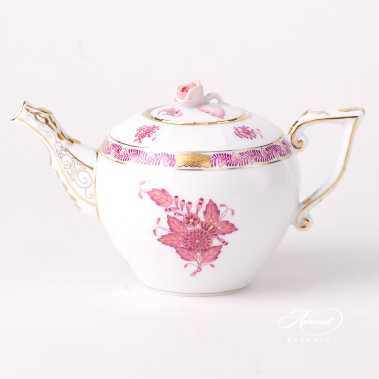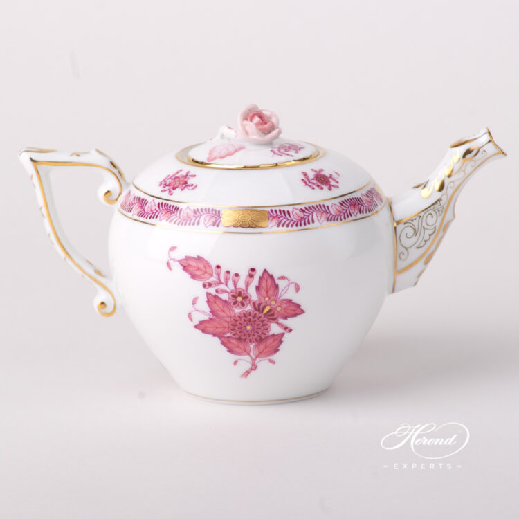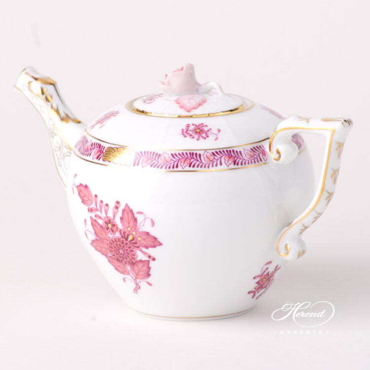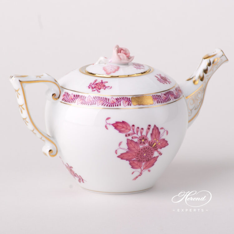 Herend porcelain Miniature Tea Pot with Rose Knob – Herend Chinese Bouquet Raspberry / Apponyi Light Purple design.
