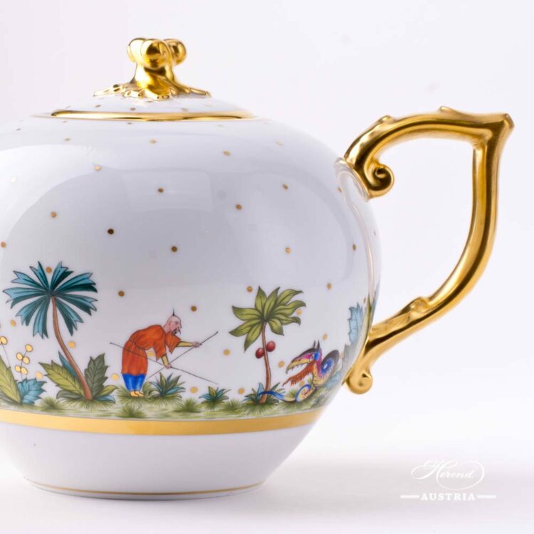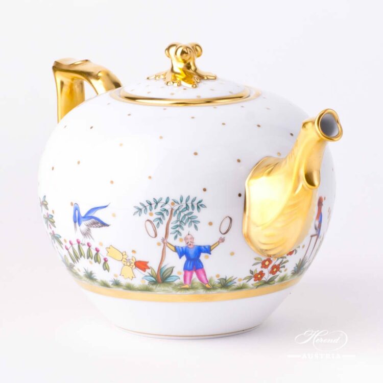 Tea Pot with Twisted Knob – Herend Oriental Showmen Asian Garden FODO pattern.