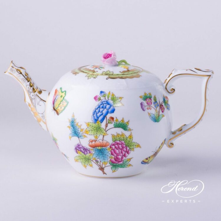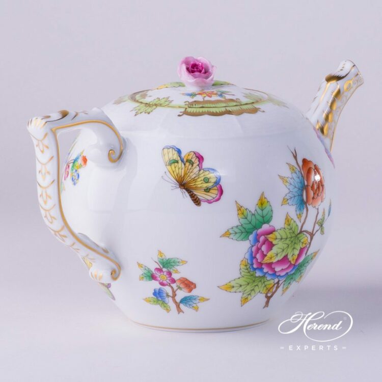 Herend porcelain Tea Pot with Rose Knob – Herend Queen Victoria VBO design.
