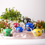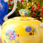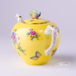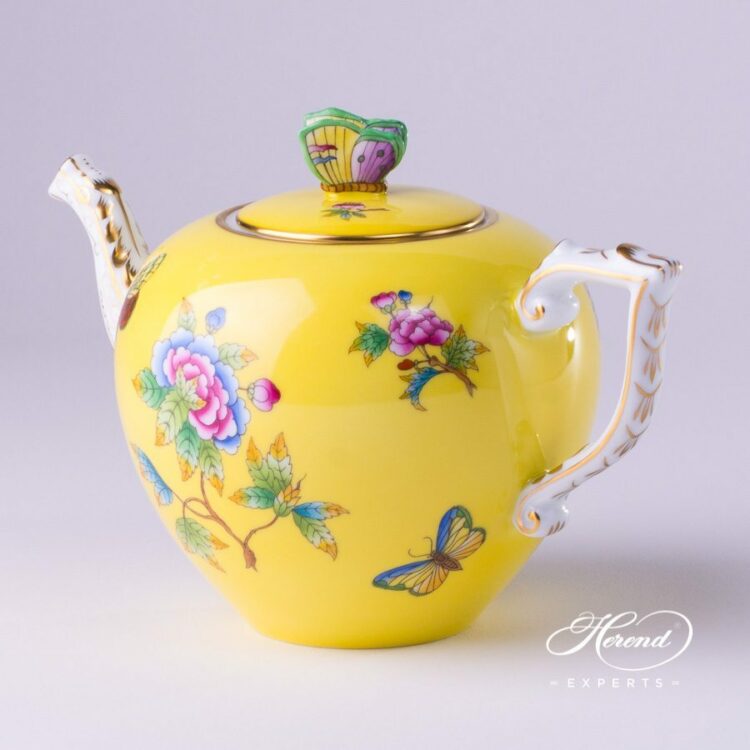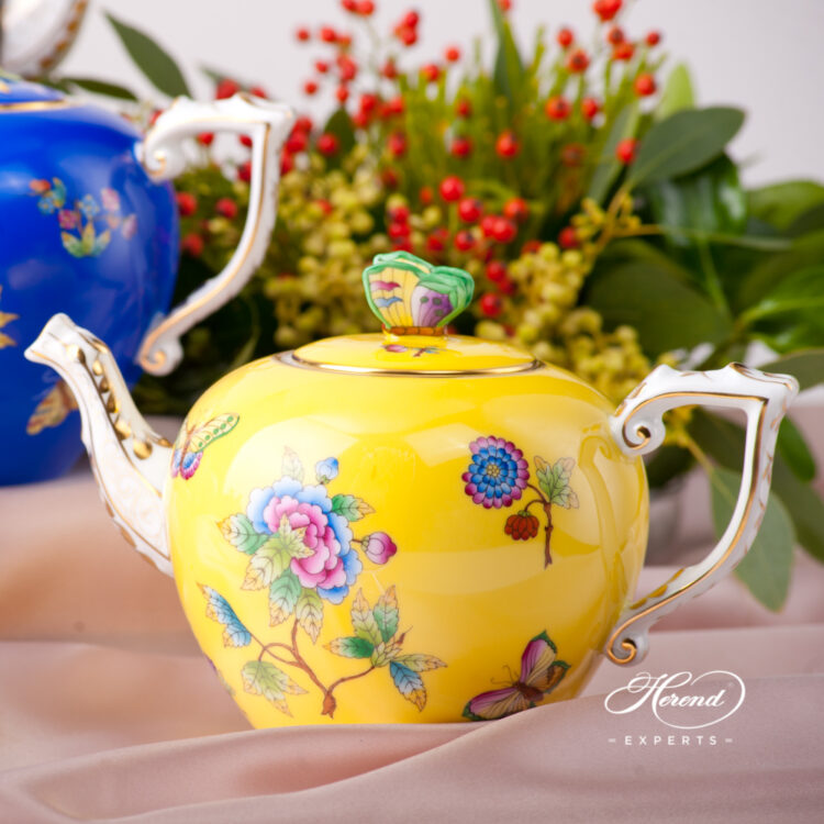 Herend porcelain Tea Pot with Butterfly Knob – Herend Queen Victoria VBO design on Yellow Background.