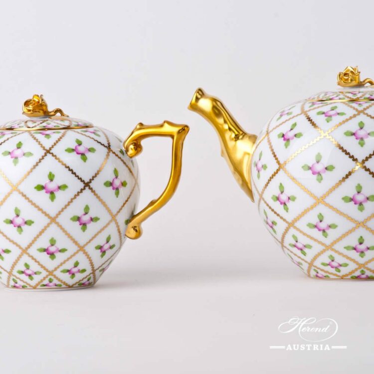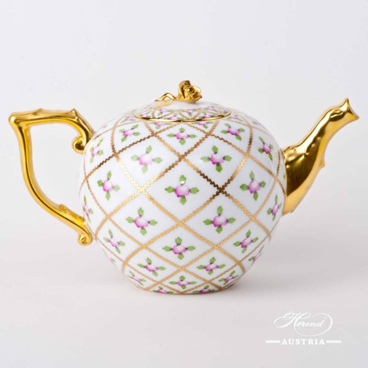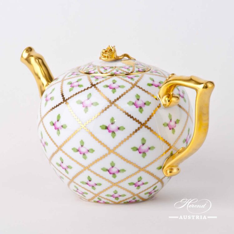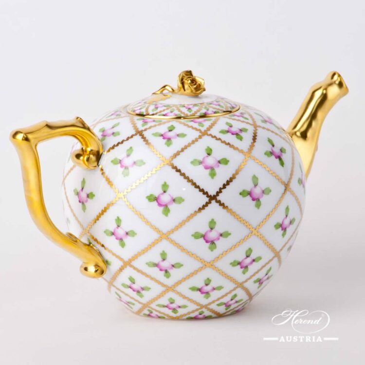 Herend SPROG Tea Pot painted with small roses and richly gilded.