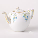 Herend porcelain Tea Pot w. Rose Knob – Herend Nyon / Morning Glory design.