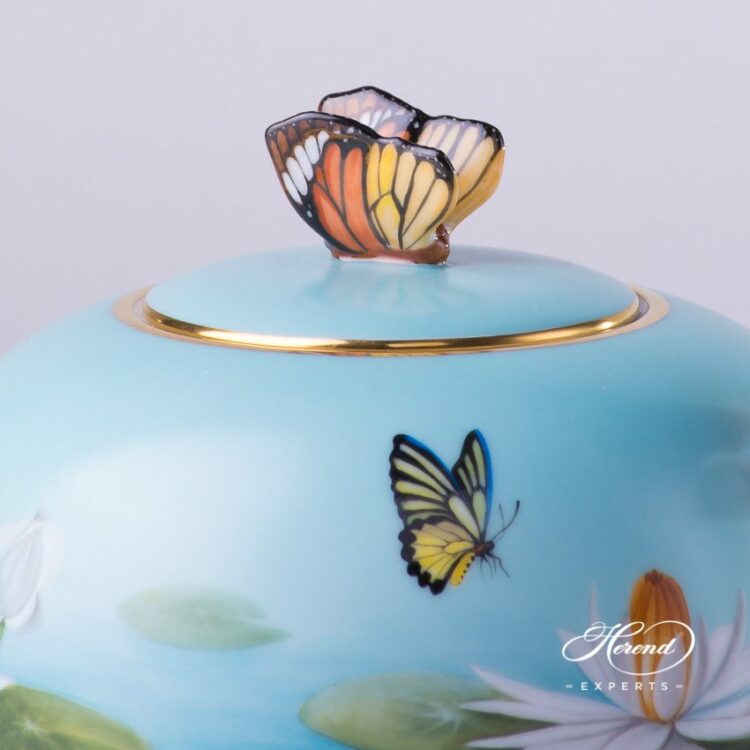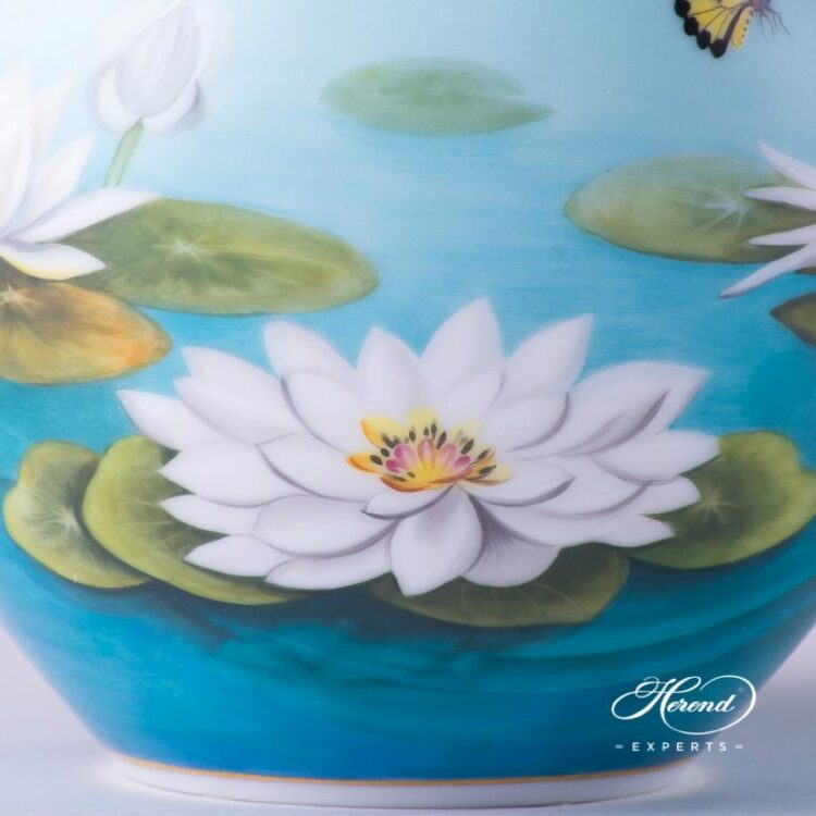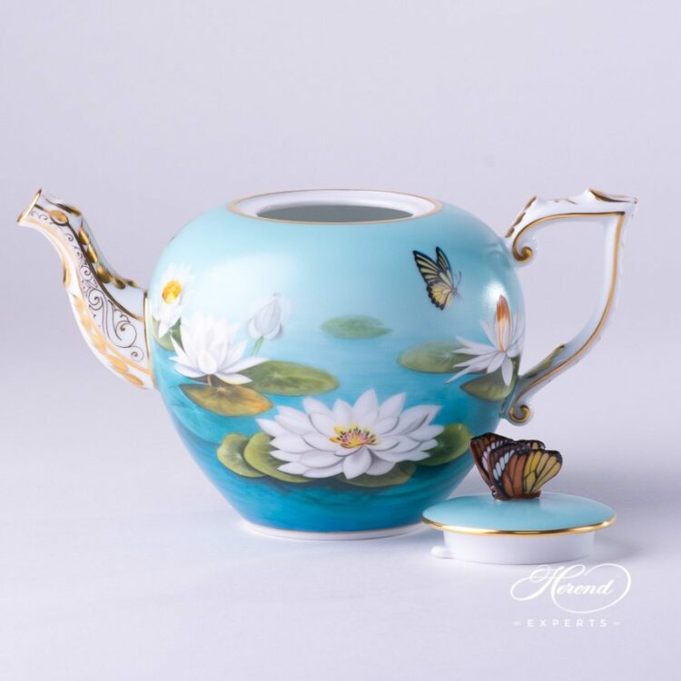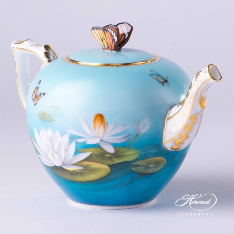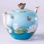Herend porcelain Tea Pot w. Butterfly Knob – Herend Water Lily / Lotus Flower pattern.