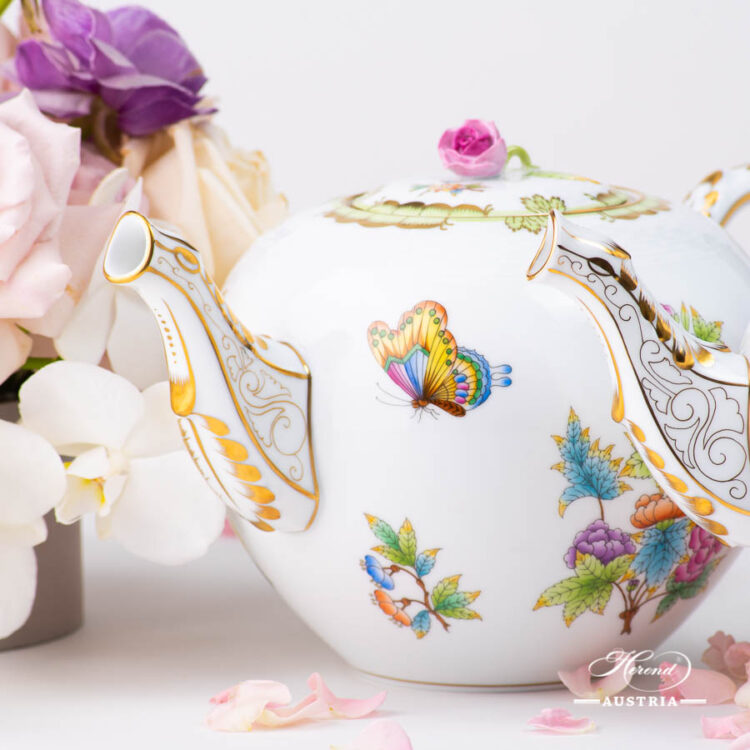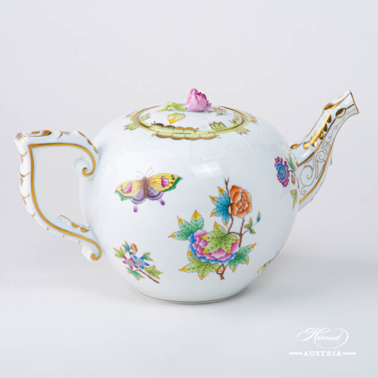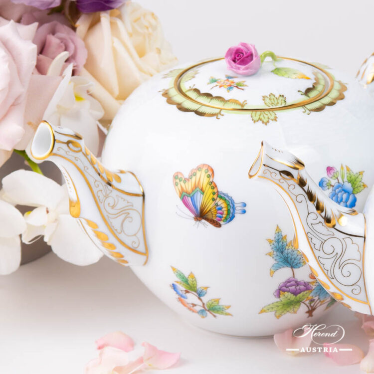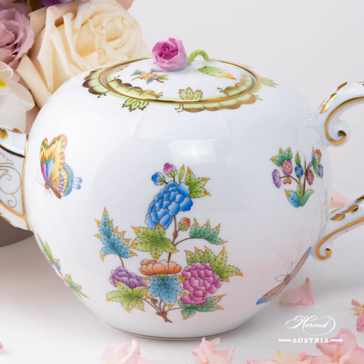 Herend porcelain Large Teapot with Pink Rose Knob painted with the Victoria – VBO design.