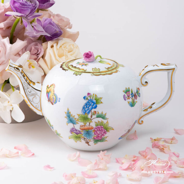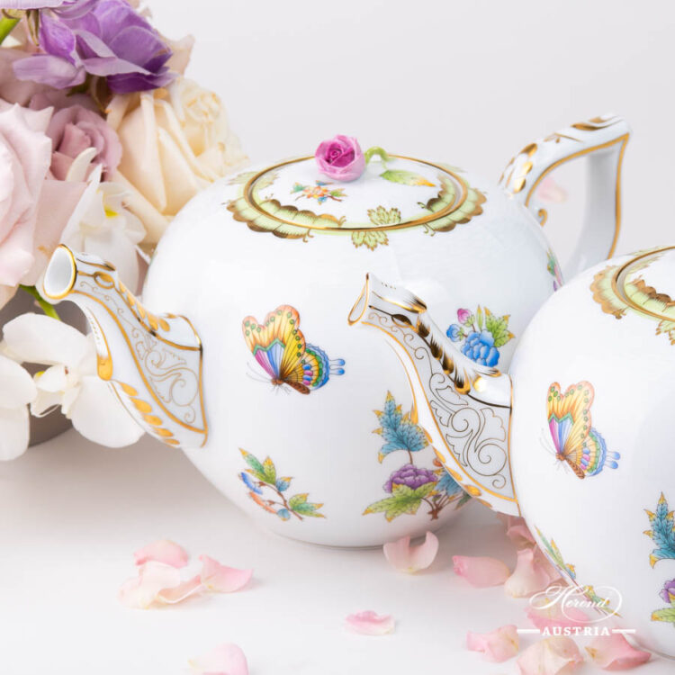 The Victoria Herend teapot is for large family gatherings or tea parties. The rose knob is a specialty of the Porcelain Manufactory of Herend.
