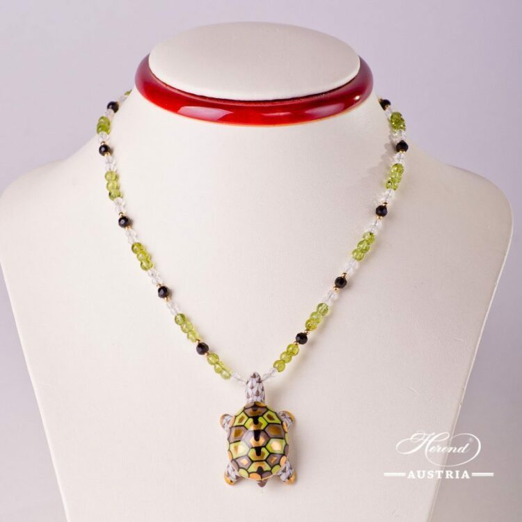 Herend fine china Turtle Necklace – Herend Turtle figurine Light Brown Fish scale (VHBR1) design + Necklace