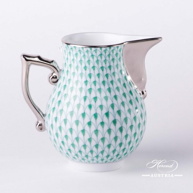 Milk Jug / Creamer – Herend Green Fish Scale w. Platinum pattern.