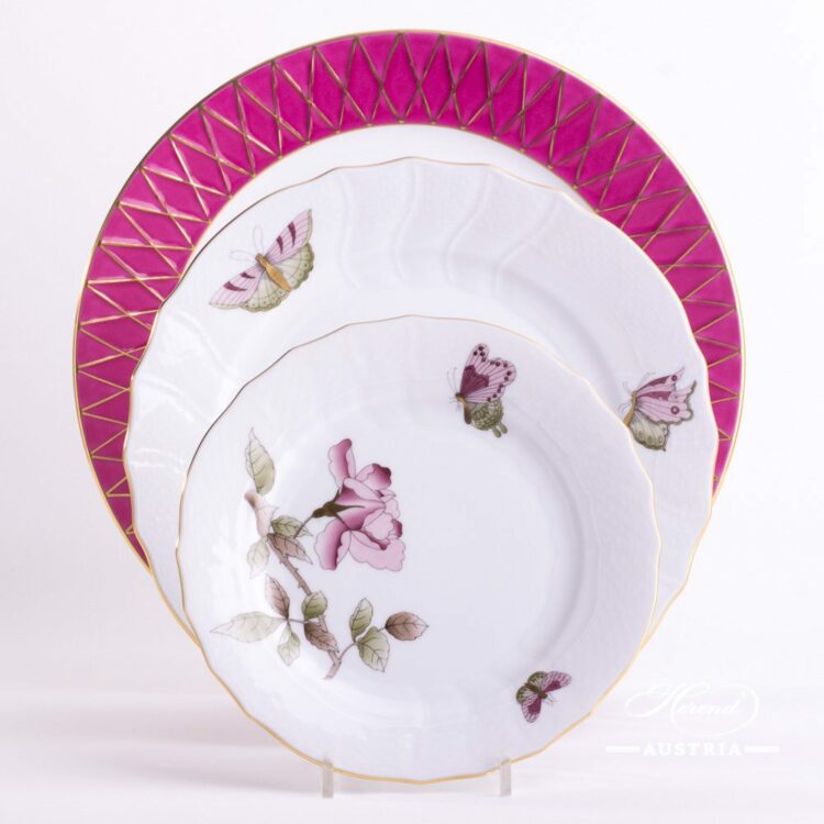 Herend porcelain Place Setting 3 Pieces – Queen Victoria Grande (VICTMC) pattern.