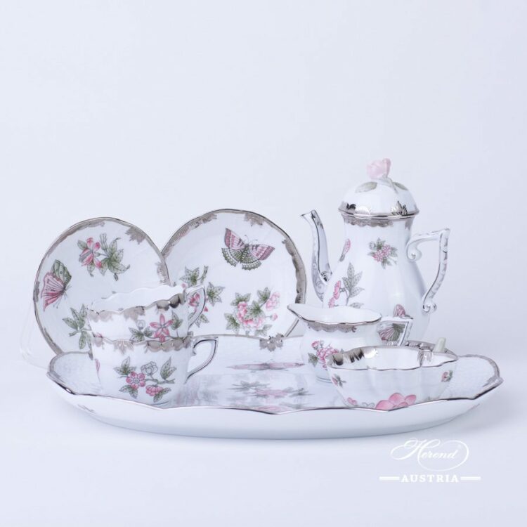 Queen Victoria Platinum VBOG-X1-PT – Coffee / Espresso Set for 2 Persons – Herend porcelain.