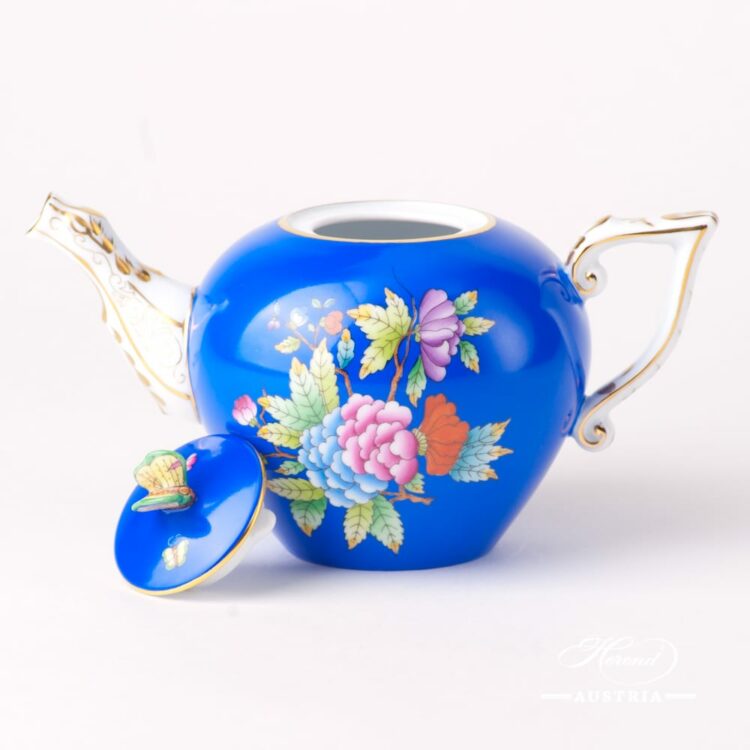 Herend Queen Victoria Blue Background Teapot with Butterfly knob – VE-FB 20608-0-17