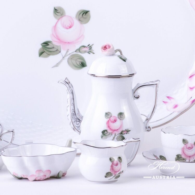Vienna Rose Grand with Platinum – VGRS-PT pattern – Herend Coffee / Espresso Set for 2 Persons.