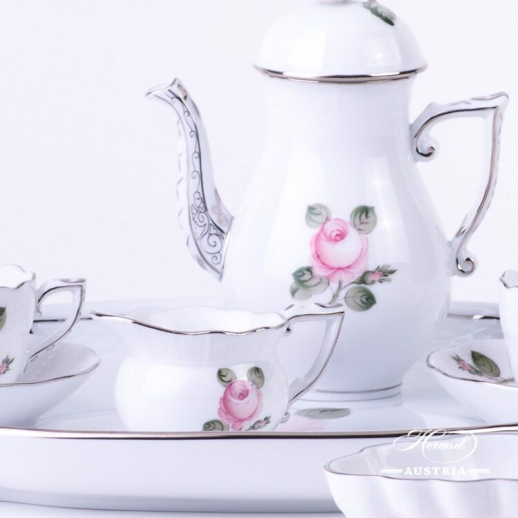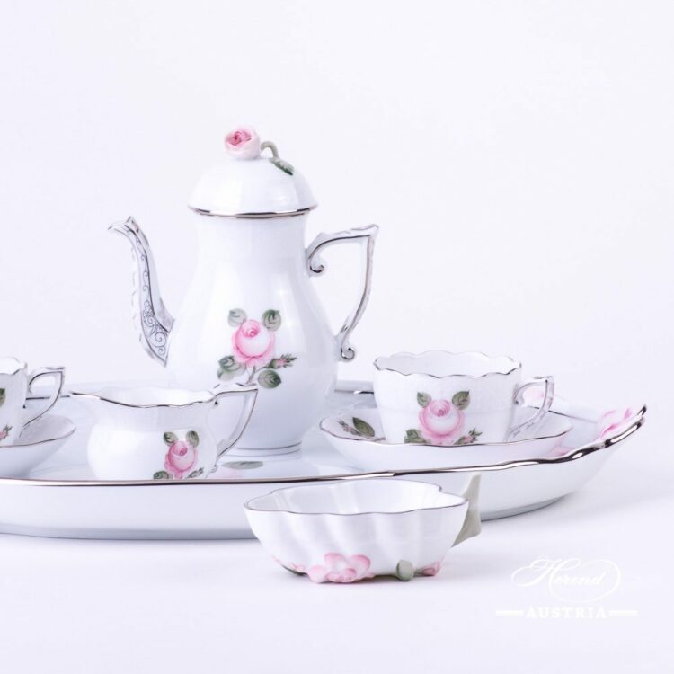 Vienna Rose Grand with Platinum – VGRS-PT pattern – Herend Coffee / Espresso Set for 2 Persons.