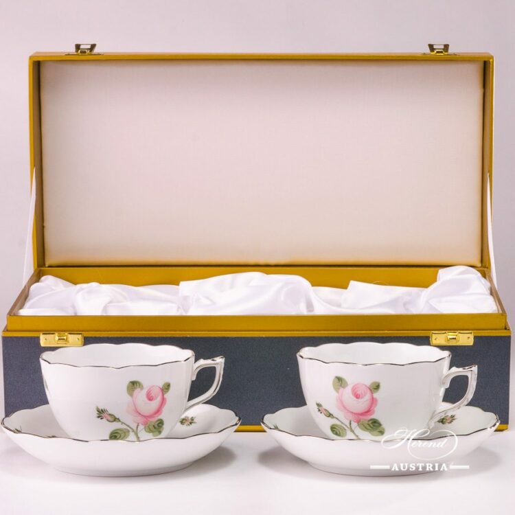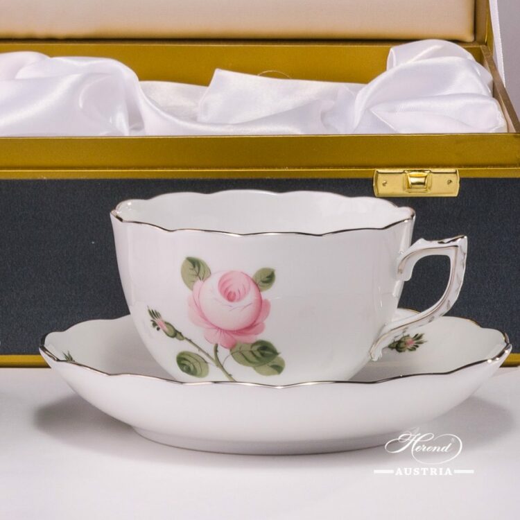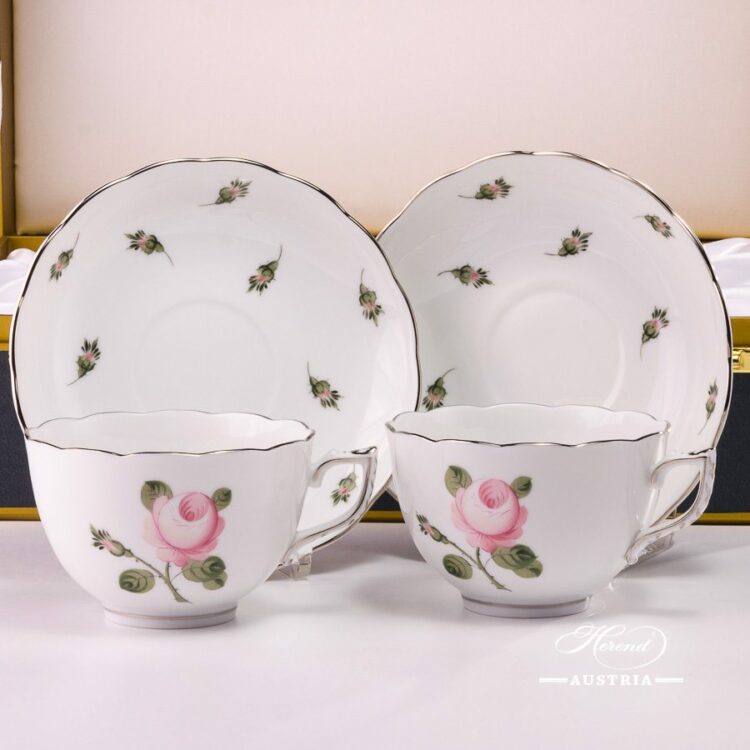 Vienna Rose Grand with Platinum – VGR-PT pattern – Herend Tea Cup and Saucer for 2 Persons in Gift Box.