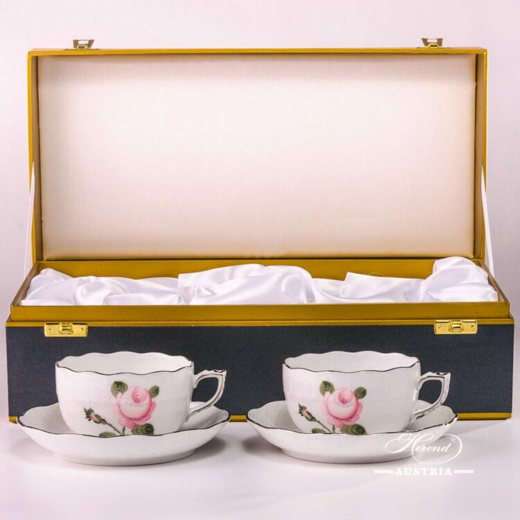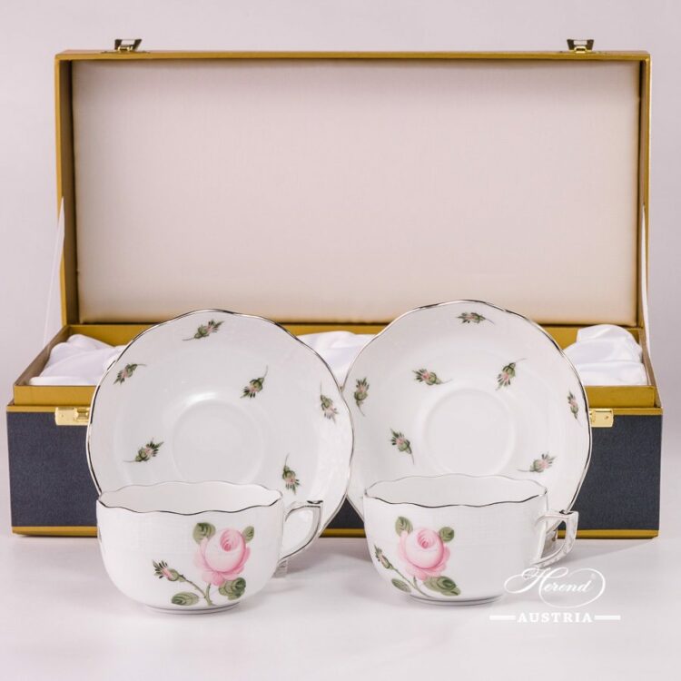Vienna Rose Grand with Platinum – VGR-PT pattern – Herend Tea Cup and Saucer for 2 Persons in Gift Box.