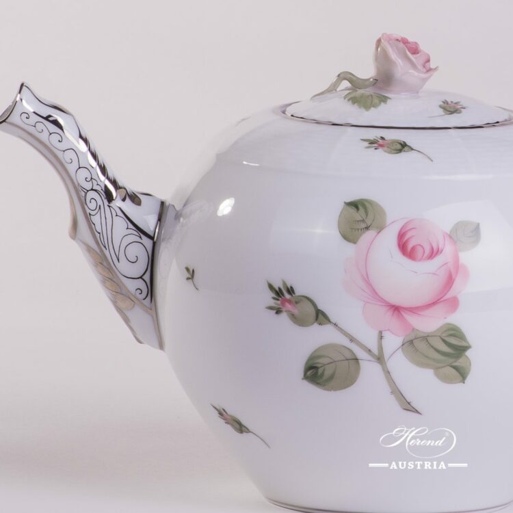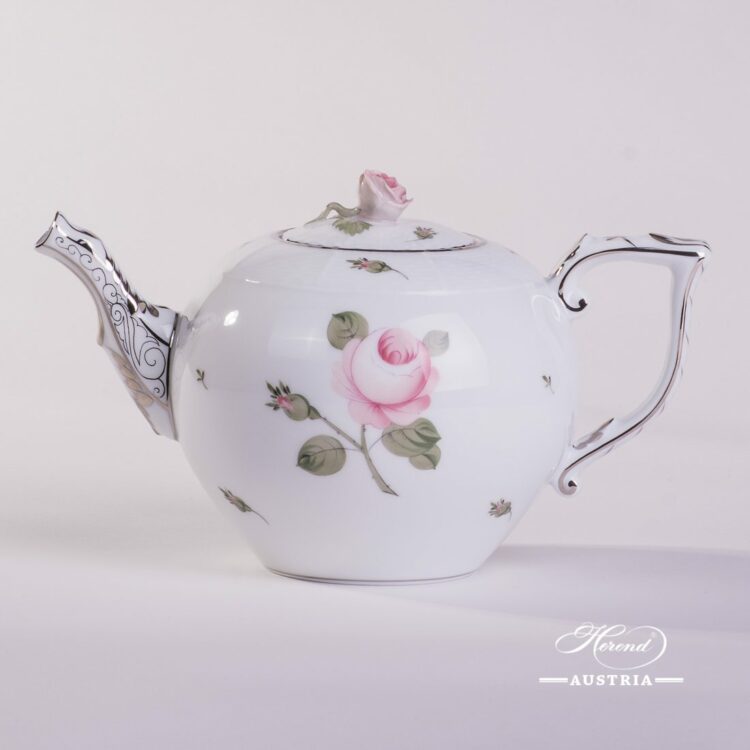 Vienna Rose Grand with Platinum – VGR-PT pattern – Herend Tea Pot w. Rose Knob.